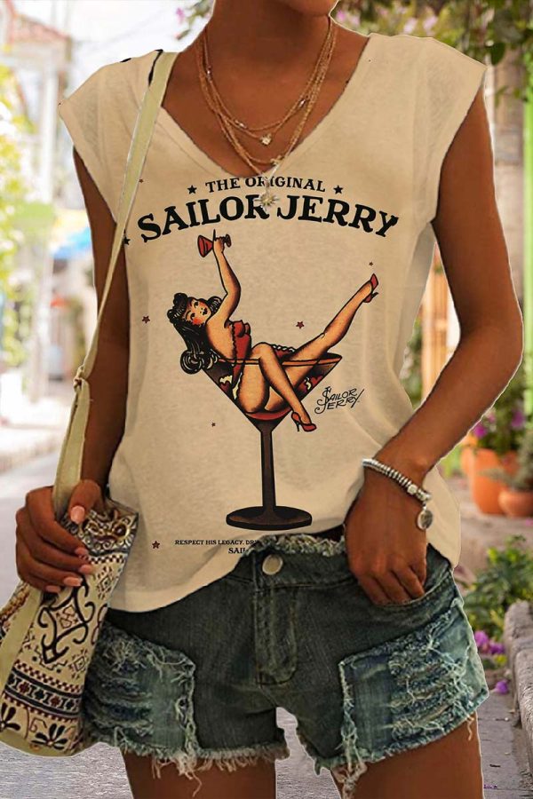 Women’s Vintage Sailor Tattoo Printed Sleeveless Tank Top